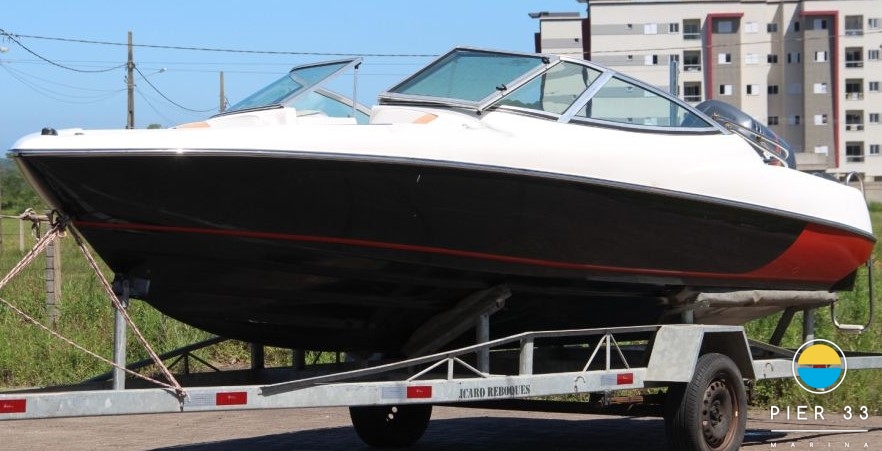 Carreta Capa Suporte bote Guincho elétrico Teka EVA Plataforma Churrasqueira carvão Som Tapete cock pit Solário proa Bar Fogão a gás Geladeira externa Toldo stolbag elétrico VHF Ventiladores internos Fechamento total
