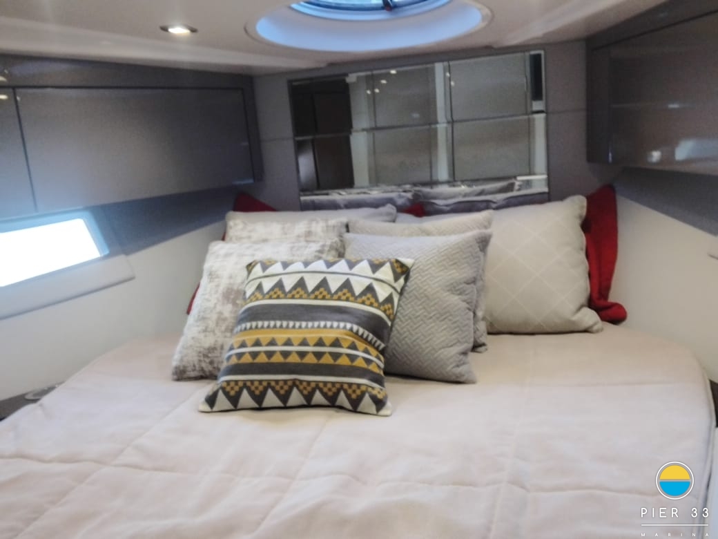 Joystick, estabilizador, dessalinizador, antena SKY, radar, chuveiro na plataforma, plataforma móvel, strobo, antena e rádio VHF, churrasqueira, ar condicionado, flaps, guincho, fechamento total, kit salvatagem, teca, toldo, tomada de cais, cozinha completa, área gourmet completa, TV em todos os quartos + sala, tomada 12V, som. | SEM: capa, carreta.