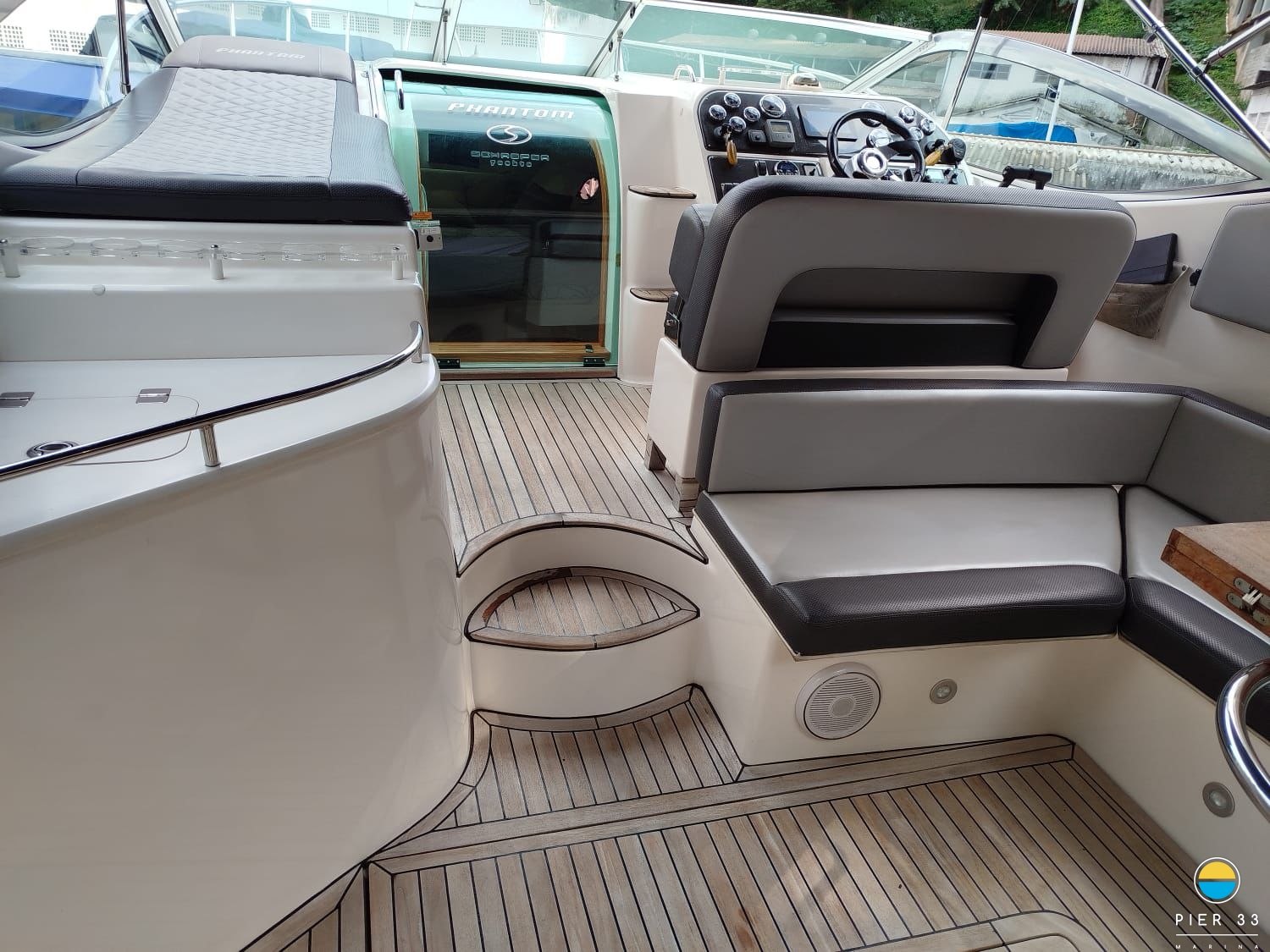 Espaço Gourmet com Churrasqueira a Carvão, Teca EVA, GPS, VHF, Guincho Elétrico, Solarium de Proa, Carreta, Capa, Som