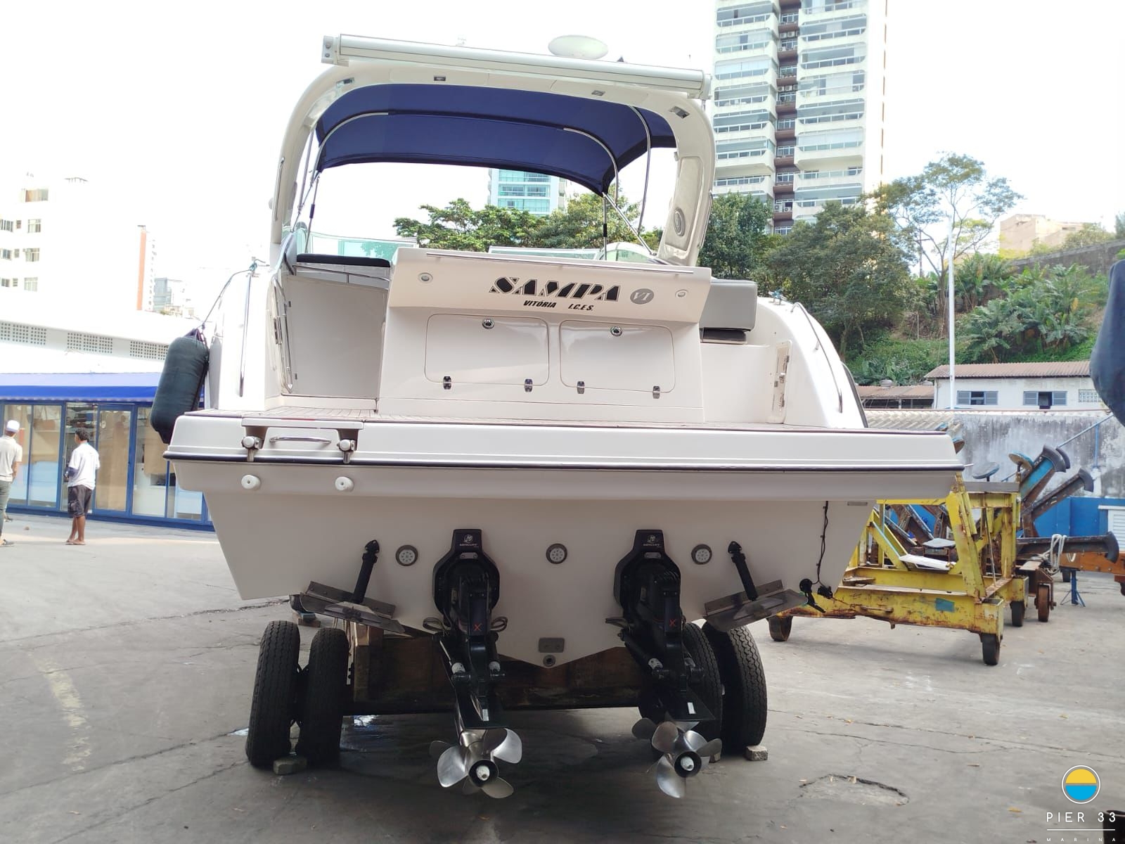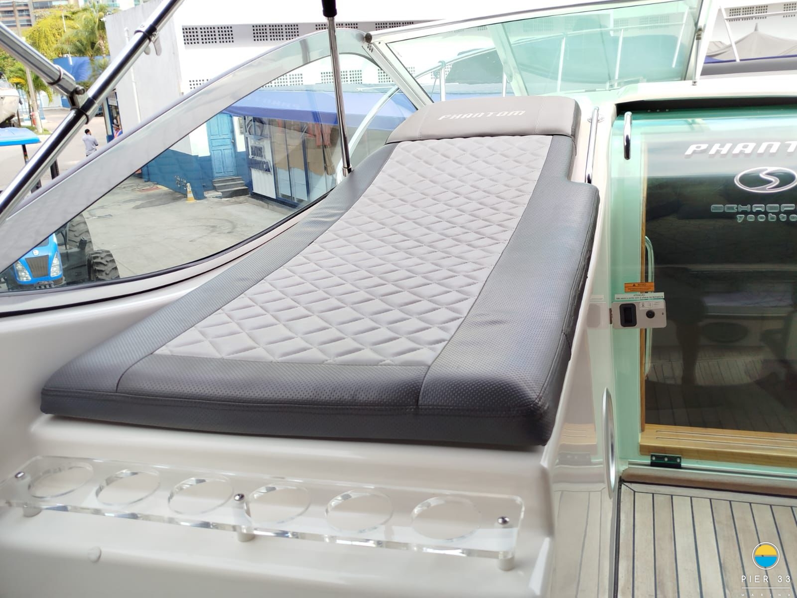 Carreta Capa Suporte bote Guincho elétrico Teka EVA Plataforma Churrasqueira carvão Som Tapete cock pit Solário proa Bar Fogão a gás Geladeira externa Toldo stolbag elétrico VHF Ventiladores internos Fechamento total
