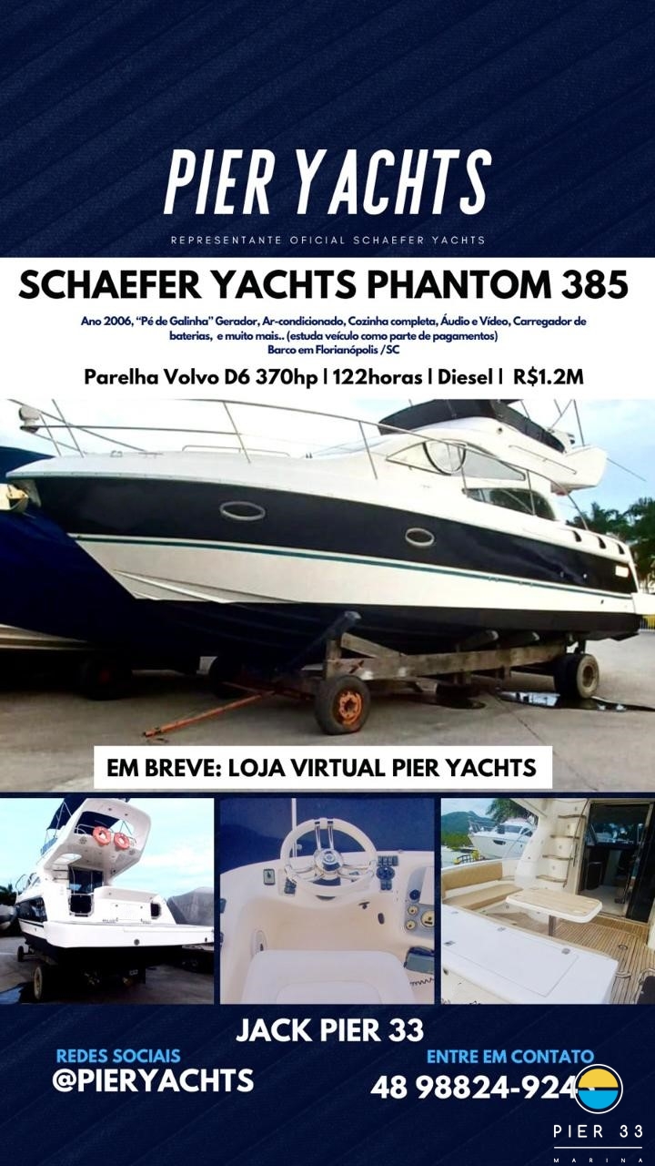 Phantom 360 Ano 2010 Único dono Parelha mercruiser 270 hp diesel com 540 horas Gerador 159 horas Ar Fogão elétrico Churrasqueira elétrica Boiler Guincho elétrico Teka plataforma e cockpit Geladeira GPS Som VHF microondas Capa Carreta Tv
